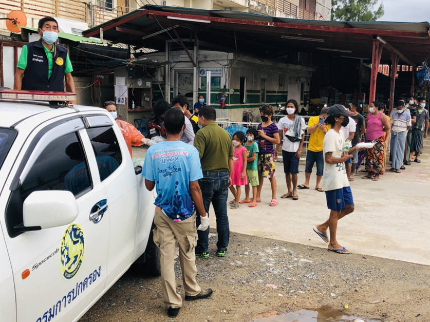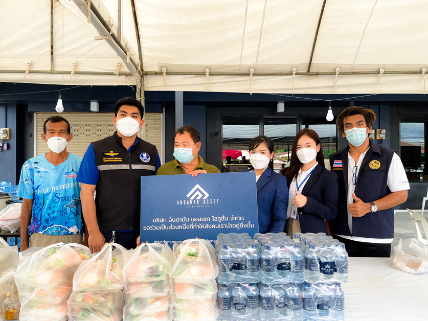 On Wednesday, September 8, 2021. Lead by Ms. Jitapha Choosub, Marketing Manager and Ms. Teenida Poksakul, Executive Secretary, representing Andaman Asset Solution Company Limited, brought items to help those affected by the Covid-19 situation, with 50 of lunch boxes and 70 of drinking water to Thalang District Chiefs and the team of the village headman, Thepkasattri sub-district, Phuket. To be given to the construction camp workers, who are directly affected by this situation.