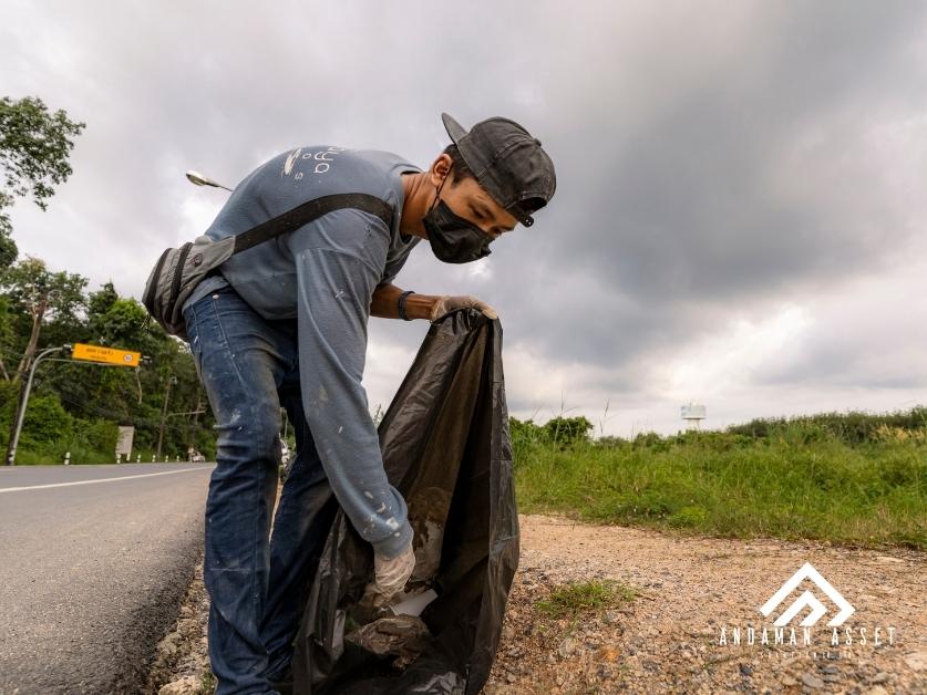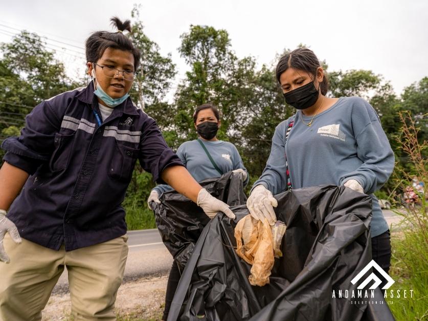 Andaman Team Asset Solution Corporate Social Responsibility collecting garbage at Bangjo and cleaning the road area on November 27, 2021
