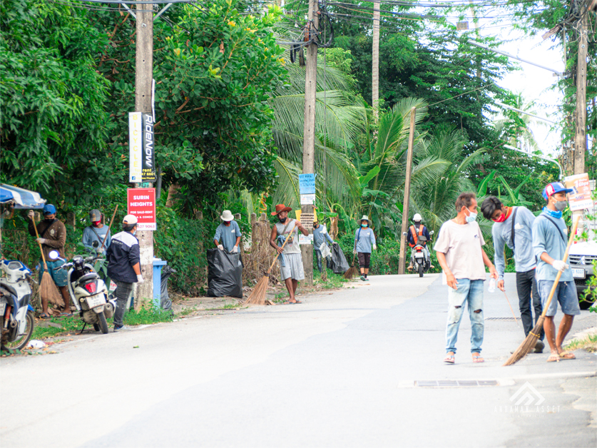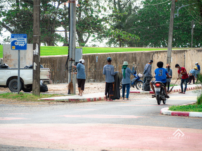 On September 4, 2021, the team of Andaman Asset Solution Co., Ltd. and Village Headman of Cherng Thale Subdistrict Moving forward together to be part of making our society better. By sweeping and collecting trash along the Cherng Thale – Bang Tao route starting from Bang Tao Road until reaching Surin Beach.